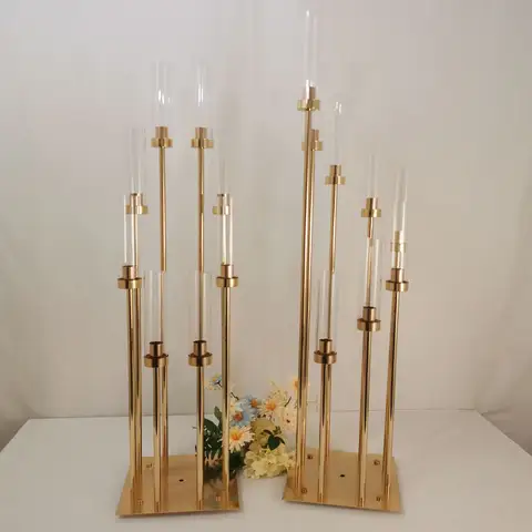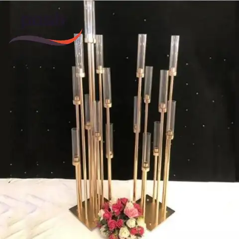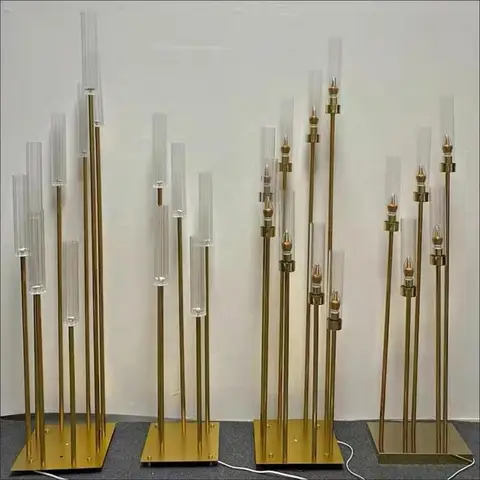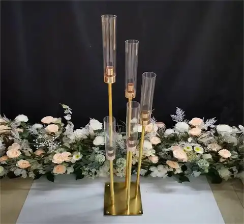شمعدان لوله ای ۵شاخه فلز با لاله شیشه