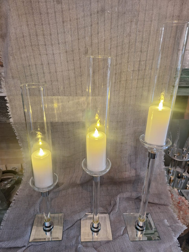 شمعدان لوله ای کریستالی ۳سایز با شمع ال ای دی