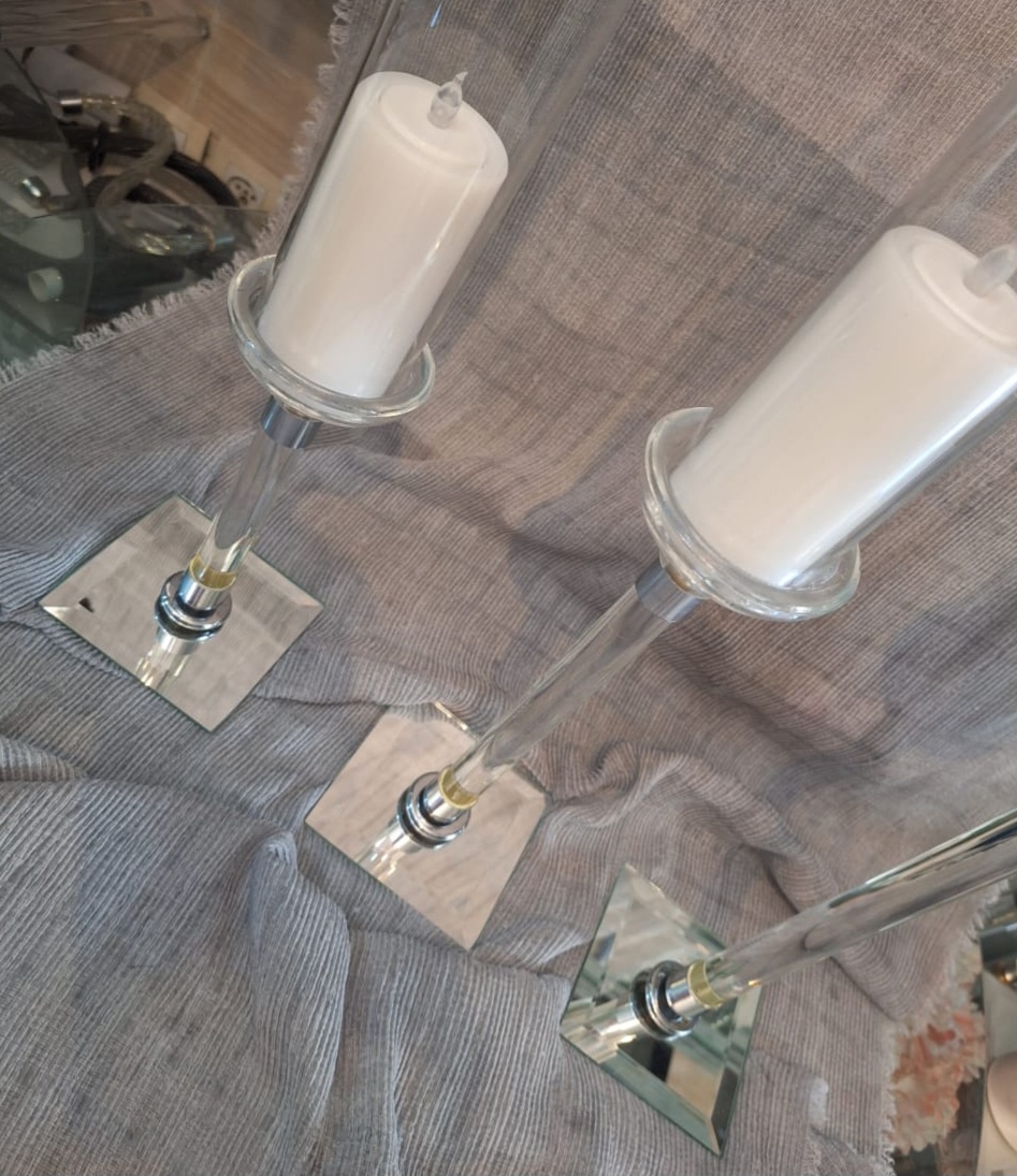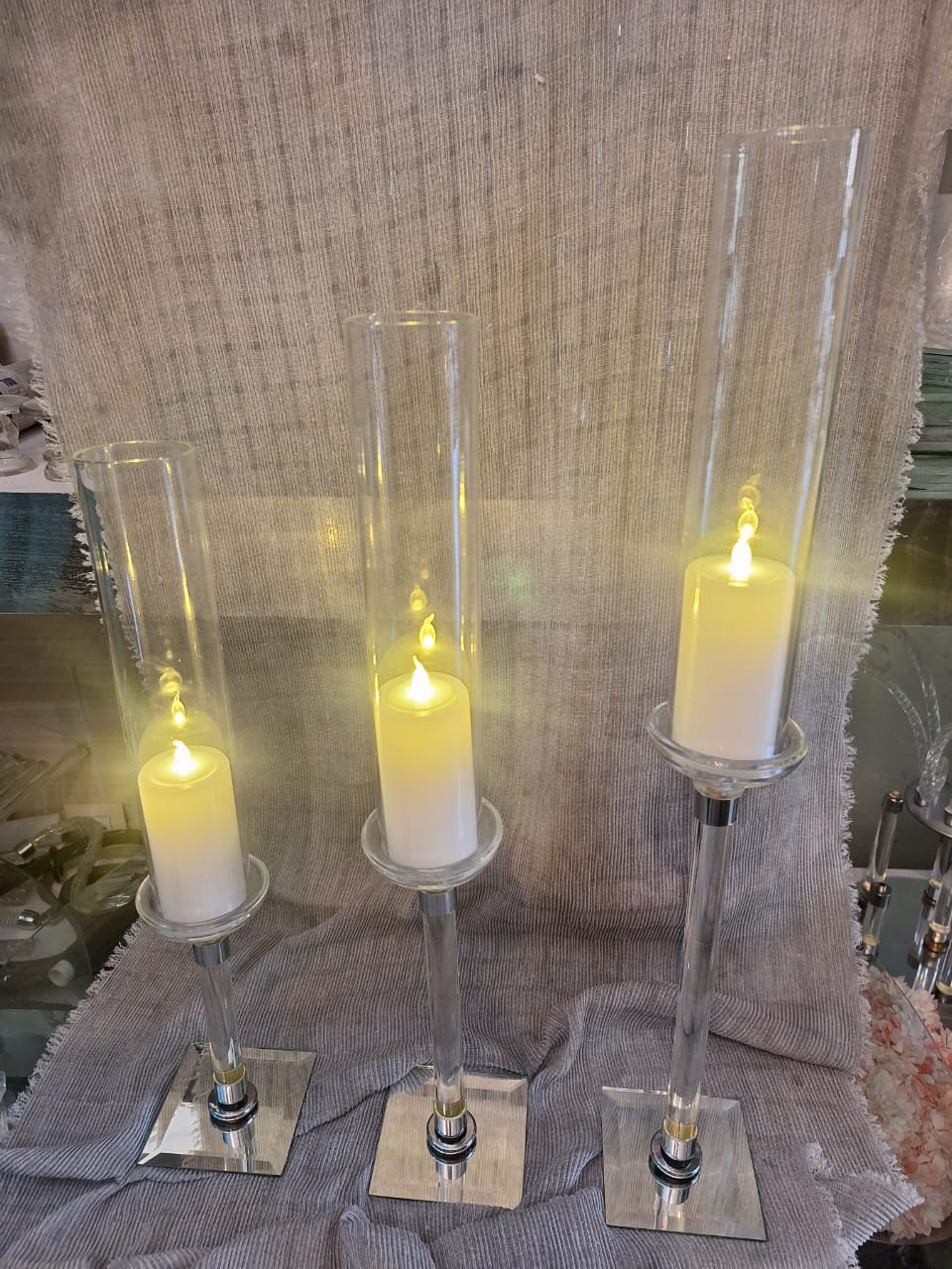 شمعدان لوله ای کریستالی ۳سایز با شمع ال ای دی