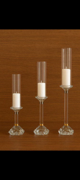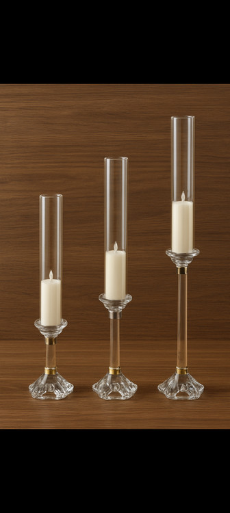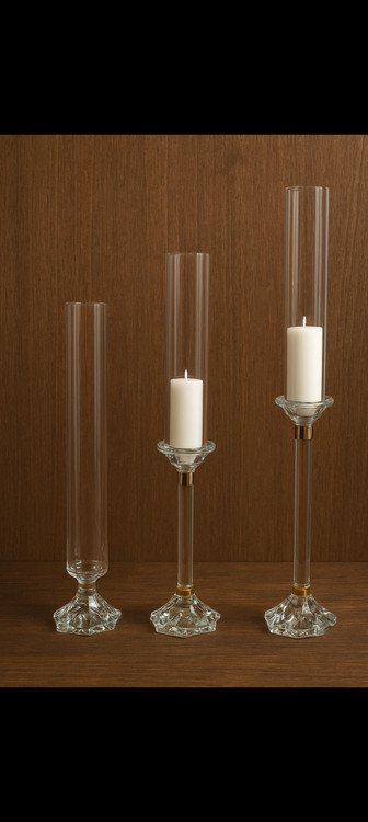 شمعدان لوله ای تمام کریستال ۳سایز با شمع ال ای دی